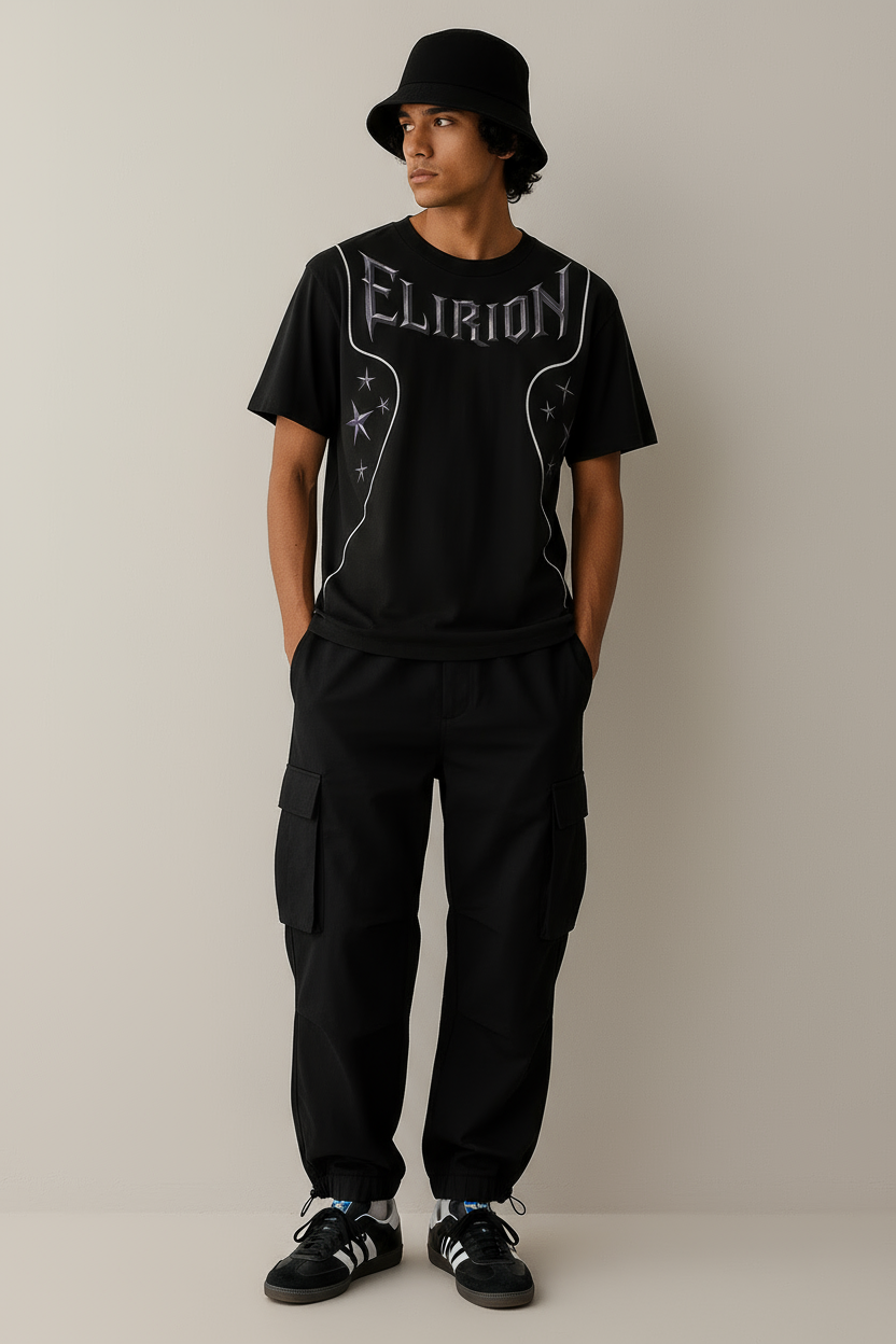 Inspired by Elirion, the guardian between shadow and light. A heavyweight oversized tee that carries the story of facing the unknown.